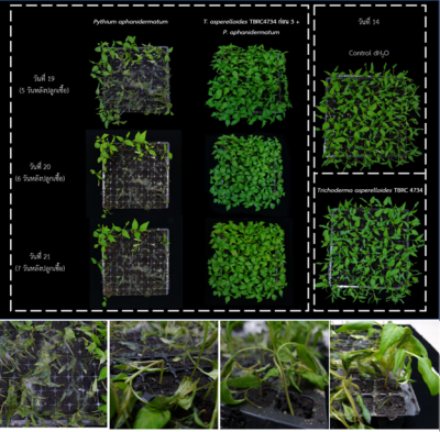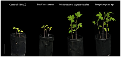 • มีประสิทธิภาพในการควบคุมและยับยั้งเชื้อราสาเหตุโรคเน่าคอดินของพริกและเชื้อแบคทีเรียสาเหตุโรคไหม้ของเมล่อนในระยะกล้า