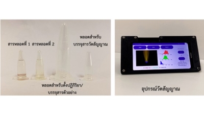 • สามารถตรวจวัดฟอร์มาลีนที่ระดับความเข้มข้นต่ำได้ ในช่วงความเข้มข้น 1.5-50 ไมโครโมลาร์ และมีความไวสูง รองรับการใช้งานมนสถานการณ์จริงแบบเรียลไทม์ • การตรวจไม่ยุ่งยาก ใช้ระยะเวลาสั้น และไม่ต้องควบคุมอุณหภูมิตลอดการตรวจวัด • ต้นทุนในการตรวจวัดต่ำ และไม่ต้องใช้เครื่องมือที่มีราคาแพง |