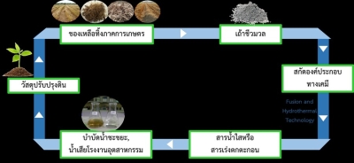 นวัตกรรมการผลิตสารน้ำใสหรือสารเร่งตกตะกอนจากเถ้าชีวมวล เพื่อบำบัดและปรับปรุงคุณภาพน้ำ มีประสิทธิภาพในการบำบัดน้ำเสียทั้งน้ำเสียอุตสาหกรรมต่างๆ น้ำเสียชุมชน และน้ำชะขยะ เป็นต้น อีกทั้งยังสามารถปรับปรุงคุณภาพน้ำดิบให้ใส ด้วยการลดสี ลดกลิ่น ค่าแอมโมเนียไนโตรเจน ค่าฟอสเฟต และค่าความสกปรก โดยไม่ต้องปรับความเป็นกรดด่างและไม่ทำให้ค่าของแข็งละลายน้ำ (TDS) เพิ่มขึ้น เพื่อให้สามารถนำน้ำกลับไปใช้ประโยชน์ต่อได้รวมถึงการใช้งานในระบบหม้อต้มไอน้ำ ช่วยยืดอายุการใช้งานของเมมเบรน ลดปัญหามลภาวะจากของเหลือทิ้งประเภทเถ้า สร้างมูลค่าเพิ่มจากของเหลือทิ้ง ลดการนำเข้าสารเคมีและลดค่าใช้จ่ายในการขนส่งไปกำจัด