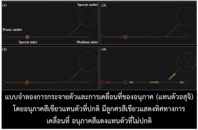การคัดเลือกอสุจิที่มีคุณภาพเป็นขั้นตอนสำคัญในกระบวนการช่วยการเจริญพันธุ์ เช่น IVF, ICSI และ IMSI โดยวิธีดั้งเดิมมักใช้การปั่นเหวี่ยงหรือสารเคมี ซึ่งอาจก่อให้เกิดความเสียหายต่อเซลล์และสารพันธุกรรม อีกทั้งยังใช้เวลาและมีความซับซ้อนสูง ปัจจุบันเทคโนโลยีไมโครฟลูอิดิกส์ได้รับความสนใจในการคัดแยกอนุภาคและเซลล์ชีวภาพ เนื่องจากสามารถควบคุมการไหลและแรงเฉือยของของไหลในระดับไมโครเมตรได้อย่างแม่นยำ หลักการดังกล่าวสามารถประยุกต์ใช้เพื่อคัดเลือกอสุจิที่มีความสามารถในการเคลื่อนที่สูง โดยอาศัยพฤติกรรมการว่ายทวนกระแสและการตอบสนองต่อแรงเฉือย ซึ่งอสุจิที่มีคุณภาพต่ำจะไม่สามารถเคลื่อนที่ผ่านแรงดังกล่าวได้ อย่างไรก็ตาม การออกแบบช่องทางและการควบคุมการไหลให้เหมาะสมยังเป็นความท้าทายสำคัญ ดังนั้นจึงมีการพัฒนาอุปกรณ์ไมโครฟลูอิดิกส์เพื่อเพิ่มประสิทธิภาพในการคัดเลือกอสุจิ ลดความเสียหายของเซลล์ และยกระดับคุณภาพของกระบวนการรักษาภาวะมีบุตรยาก