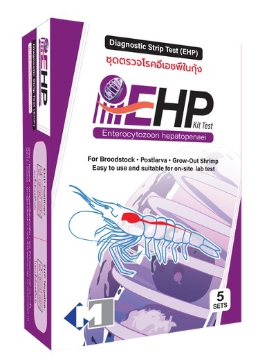 เชื้อ Enterocytozoon hepatopenaei (EHP) เป็นปรสิตในกลุ่มไมโครสปอริเดียที่ก่อโรคในกุ้ง แม้ไม่ทำให้กุ้งตายฉับพลัน แต่ส่งผลให้กุ้งแคระแกร็น โตช้า และกินอาหารน้อยลง สร้างความเสียหายทางเศรษฐกิจอย่างมหาศาล ทีมนักวิจัยจาก ศูนย์พันธุวิศวกรรมและเทคโนโลยีชีวภาพแห่งชาติ (ไบโอเทค) สำนักงานพัฒนาวิทยาศาสตร์และเทคโนโลยีแห่งชาติ (สวทช.) ร่วมกับเครือข่ายพันธมิตร จึงได้พัฒนาชุดตรวจ EHP ที่ลดข้อจำกัดจากการตรวจในห้องปฏิบัติการมาเป็นชุดตรวจที่เน้นความสะดวกและรวดเร็ว เพื่อให้เกษตรกรสามารถเฝ้าระวังโรคได้ด้วยตัวเอง โดยชุดตรวจเชื้ออีเอชพีที่พัฒนาขึ้น ใช้งานง่าย ไม่ต้องใช้เครื่องมือ และไม่จำเป็นต้องตรวจในห้องปฏิบัติการ เพื่อให้เกษตรกรใช้ตรวจเชื้ออีเอชพีด้วยตัวเอง และมีความสะดวกรวดเร็ว สำหรับวิธีการตรวจประกอบด้วย 4 ขั้นตอน คือ เตรียมตัวอย่าง สกัด ทดสอบ และอ่านผล ซึ่งระยะเวลาตรวจรวมทุกขั้นตอนใช้เวลาเพียง 25 นาทีเท่านั้น
