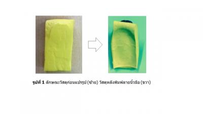 คำขออนุสิทธิบัตร เลขที่คำขอ 1603000449 เรื่อง ยางธรรมชาติเทอร์โมพลาสติกลอกลายแบบ 3 มิติ สำหรับงานพิสูจน์หลักฐาน ยื่นคำขอวันที่ 7 มีนาคม 2559