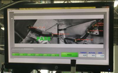 ระบบการตรวจสอบด้วยภาพจะใช้กล้องเวปแคม 2 ตัว ร่วมกับโปรแกรม LabVIEW สามารถตรวจสอบได้ 6 ตำแหน่ง พร้อมทั้งแสดงตำแหน่งที่ผิดพลาด สถานะของชิ้นงานว่า PASS หรือ FAIL และมีเสียงเตือนเมื่อชิ้นงานไม่ผ่านการตรวจสอบ